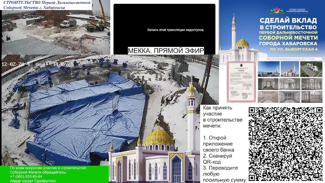 строительство Первой Дальневосточной Соборной Мечети. Адрес расположения: г. Хабаровск, ул. Выборгская 4 Застройщик: РО "Духовное управление мусульман Дальнего Востока в составе ЦДУМ России" Разрешение на строительство №27-23-90-2022 Срок действия разрешения: 19.10.2027 Телеграмм канал, посвященный строительству мечети: https://t.me/domvrayu_mechet Сайт строительства Первой Дальневосточной Соборной Мечети: https://domvrayu.ru/ По всем вопросам участия в строительстве: +7 965 930-85-64 Айдар хазрат Гарифуллин