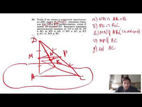 №34. Точка D не лежит в плоскости треугольника ABC, точки М, N и Р — середины отрезков DA, DB и DC соответственно, точка К лежит на отрезке BN. Выясните взаимное расположение прямых: a) ND и АВ; б) РК и ВС; в) MN и АВ; г) МР и АС; д) KN и AC; е) MD и ВС. Мой второй канал для подготовки к ЕГЭ и ОГЭ - https://www.youtube.com/ЕвгенийСумин Инстаграм - https://www.instagram.com/EGE_OGE.math Личный инстаграм - https://www.instagram.com/ee_sumin VK - https://vk.com/evgeniysumin FB - https://www.facebook.com/EvgeniySumin