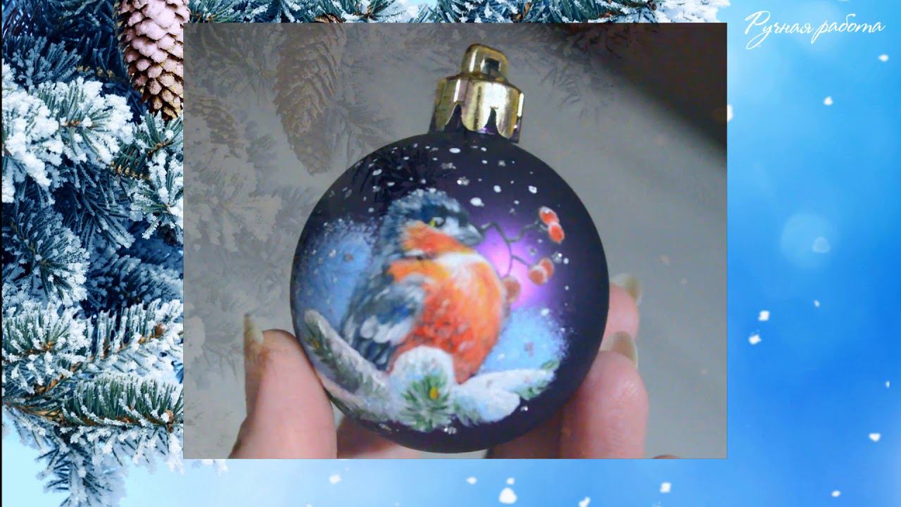 Роспись на елочной игрушке снегирь
