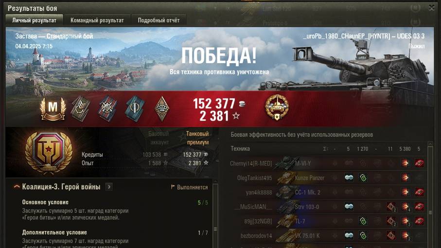 ЗАСТАВА МАСТЕР на UDES 03 3 ОПЫТ: 1512 СУММАРНЫЙ УРОН: 6650 медаль КАЛИБР и ШАНС на ПОБЕДУ - 42%