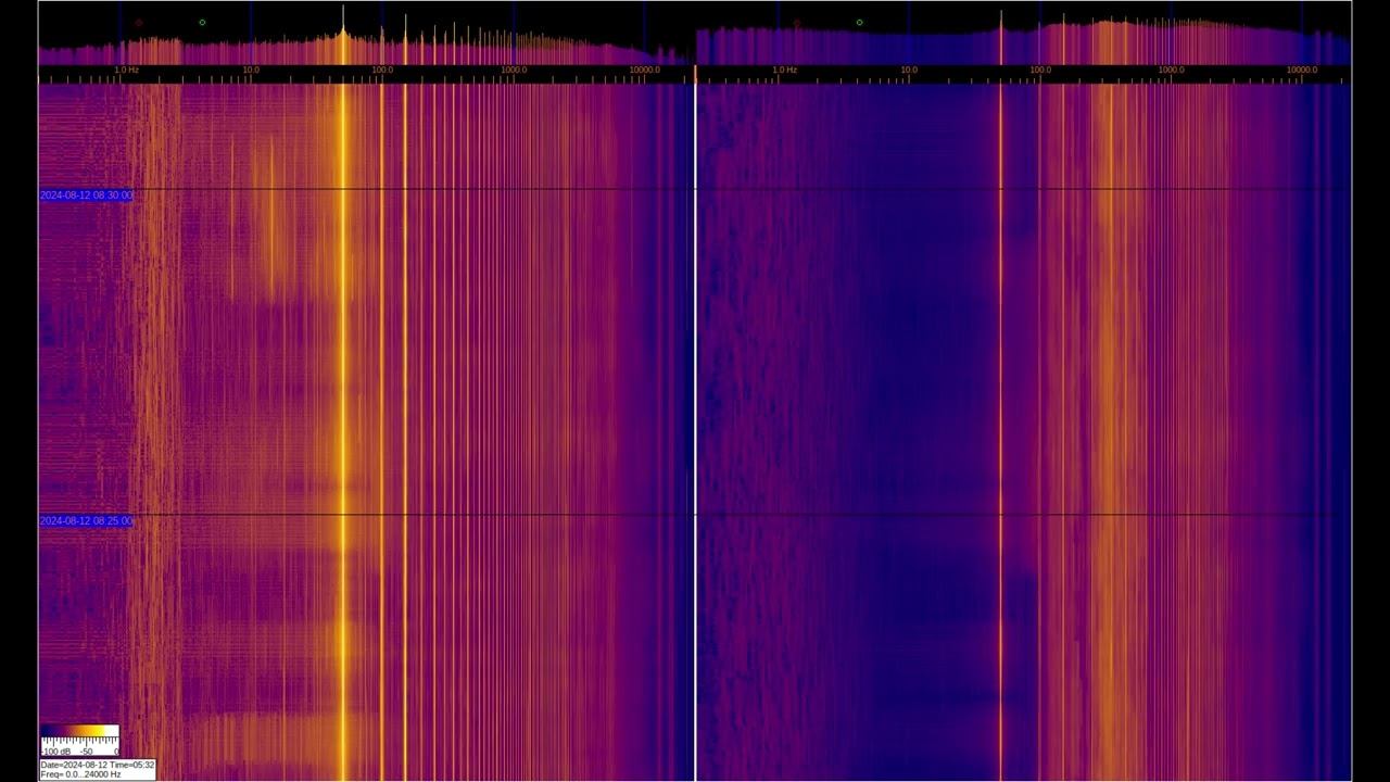 Левый и правый сигналы снимаются с индуктивных датчиков с ферромагнитными элементами, но левый соеденён дополнительно с заземлением на 2-х штырях из нержавеющей стали заглублённых на 1м и отстоящих друг от друга на 1м. Можно видеть большое количество гармоник от электросети и различные искуственные сигналы. Интерес представляют сигналы на частотах ниже 50Гц, где можно наблюдать работу специализированной аппаратуры и сигналы связи подводных лодок и подъземных объектов. Отдельно стоит рассматривать сигналы в районе 1-3Гц на левом спектре, которые относятся к геомагнитному фону, который модулируется солнечной активностью, более детально их можно рассмотреть в видео под названием "Сигналы из Земли", которые есть в плэйлистах ниже. О ПРОИСХОЖДЕНИИ ЧАСТОТНОЙ МОДУЛЯЦИИ СЕРПЕНТИННОЙ ЭМИССИИ https://youtu.be/bwWHggY1IVU?si=xAX1diRKI9MxQJ88&t=1740 Previous monitoring is in playlists: EMF monitor https://youtube.com/playlist?list=PLiRg2YCbXcwn41BHqADKVBep_TgVq6XUN Очень Низкая Частота ~ Very Low Frequency https://youtube.com/playlist?list=PLiRg2YCbXcwnp5DxM4PnSs7k_Rnypaqek SIGNALS IN THE GROUND https://youtube.com/playlist?list=PLiRg2YCbXcwl6f3Bf5arHbGSOCNE5U71O поддержать канал: 8-999-654-93-44
