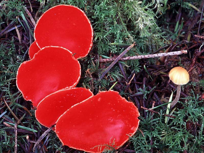 Собираем грибы Саркосцифы Алые в лесу..