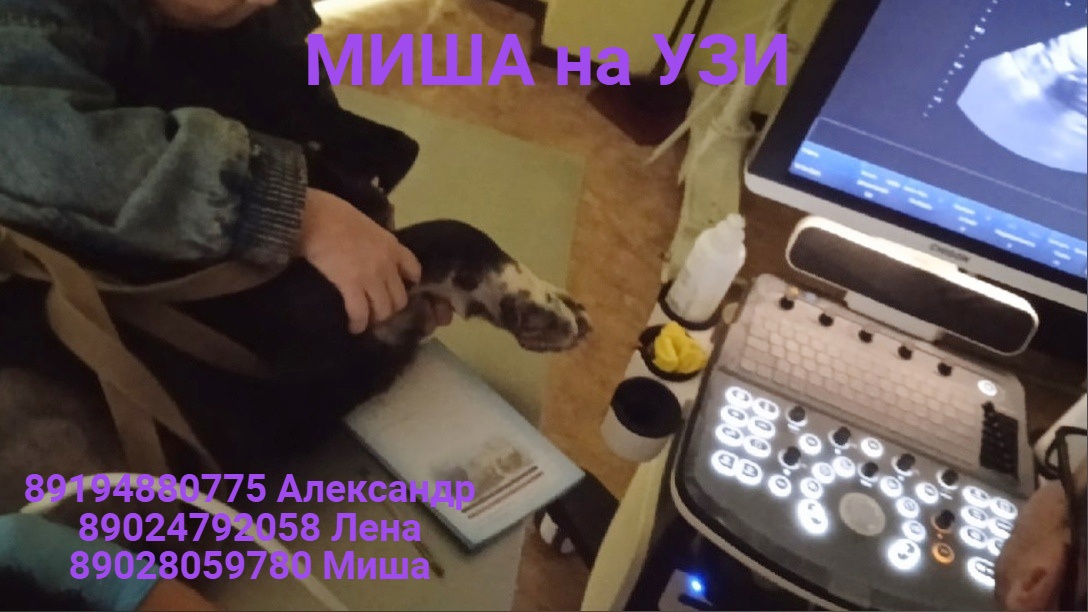 Новости Миши после ДТП из Оверят. Мы сьездили с песиком на УЗИ внутренних органов брюшной полости. Результат УЗИ не плохой, у врача претензий к органам брюшной полости нет. Спасибо огромное всем кто помог с оплатой. Результат УЗИ и чек прилагаем. Но мы заметили что вечерами и ночами Миша кашляет, в то время когда не движется, лежит или спит, что то отхаркивает. На это вет.врач допускает 2 варианта: либо все таки есть какие либо повреждения легких или сердца, что маловероятно потому как выхода крови из пасти собакена нет, либо это проявления глистов что легко исключить проглистогонив. Мы подали Мише глистогонку, ждем результат ее действия и продолжаем лечение ранее прописанным назначениям. Если после действия глистогонного средства кашель и отхаркивания у Мишу не пройдут, то его придется везти на рентген легких и смотреть сердце, а это опять ехать только в г.Пермь. Пока после глистогонки прошли всего сутки и чтобы глисты выходили не видели и какахи у кобеля хорошие. Поэтому подождем до понедельника. Ранка на подушечке лапки потихоньку заживает. Еще фото Миши можно увидеть здесь https://vk.com/album213994132_286952335 Подробности можно узнать: 89194880775 Александр 89024792058 Лена 89028059780 Миша звонить желательно вечером или пишите смс (вайбер и ватсап). PS: пожалуйста, присмотритесь к песику Мише! Миша бездомный пес, лечится, но после выпускать на волю нам его очень не хочется потому как он слишком хорош и по характеру (позволяет и понимает все) и на ощупь... мягонький плюшевый Мишка который создан явно не для помоек... Ищем дом, а с продолжением лечения поможем!