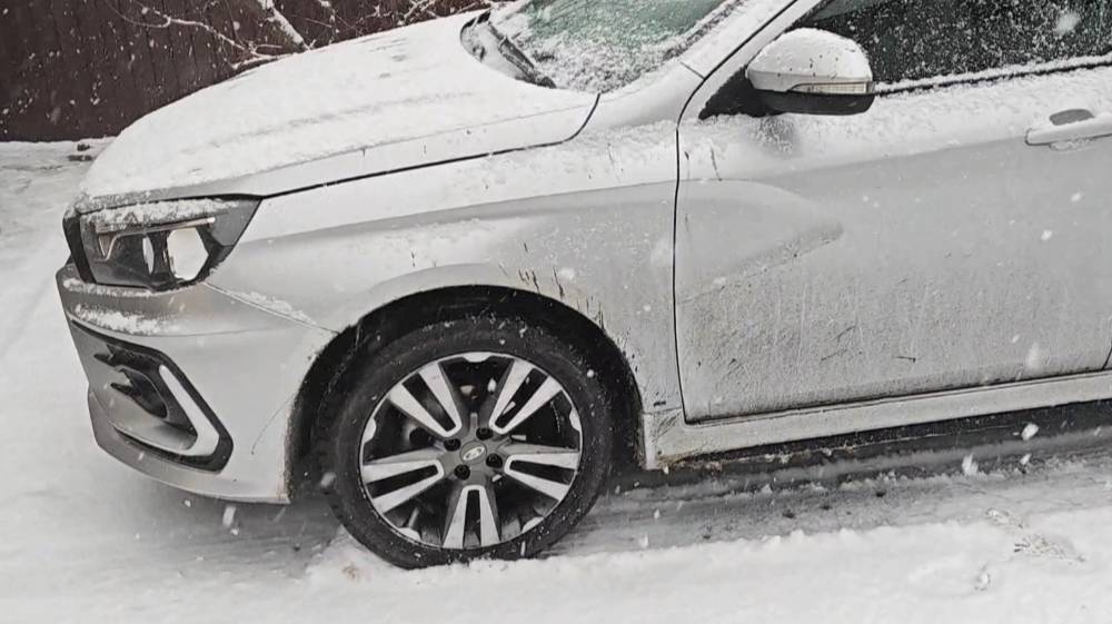 Lada Vesta. Неожиданно - снег. А я на летней резине.
