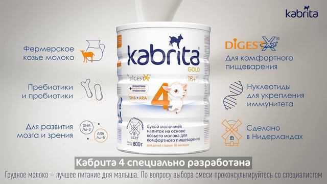 Kabrita® 4 – уже в продаже! Грудное молоко – лучшее питание для малыша. По вопросу выбора смеси проконсультируйтесь со специалистом.
