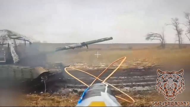 Курское направление. Уничтожение танка Т-64БВ украинских оккупантов ударами FPV-дронов на оптоволокне и кадры объективного контроля. Работает отряд БПЛА «Тигры» из 83-й отдельной гвардейской десантно-штурмовой бригады.