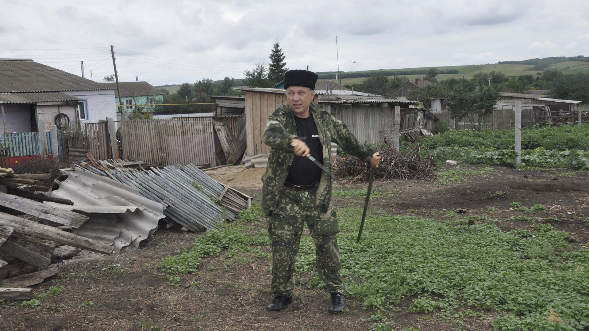 2013.06.22. Шалимов делится опытом владения шашками в Нехаевском юрте в гостях у Брылёва В.Н.