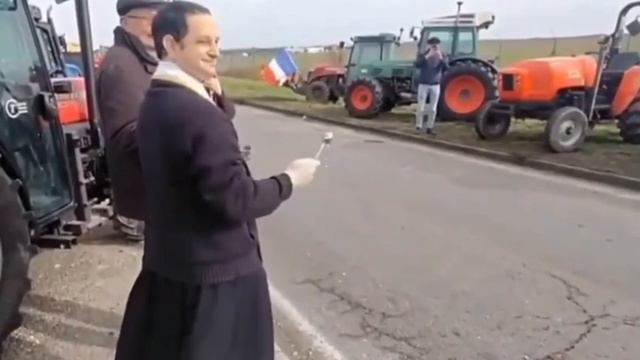 На трассе из Ажена в Париж был замечен священник, который благословлял колонны с тракторами
