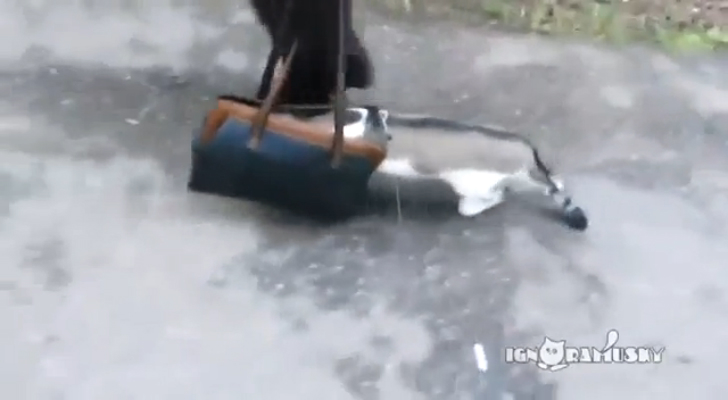 Кот впервые вышел на улицу