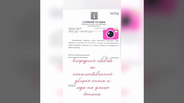 Очередной ответ от администрации города Красногорска по некачественной уборке снега и льда на улице Ленина. Администрация города Красногорска не справляется со своими должностными! #2023 #россия #подмосковье #город #дом #красногорск #ответ #отчет #нарушение #закон #чтопосмотреть #снег #гололед #опасно #пешком #пешеход