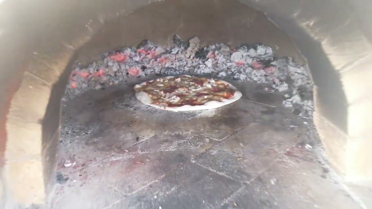 Пицца печётся в печи.