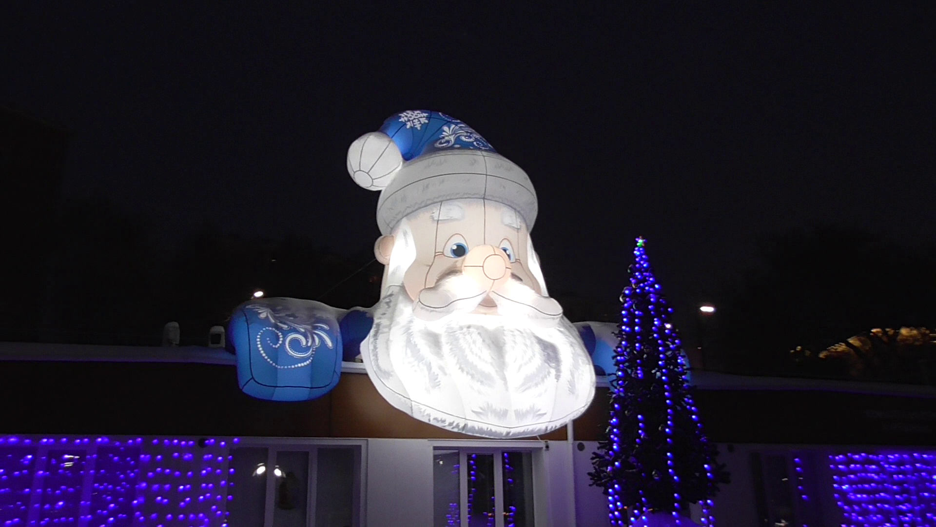 Я прогуливаюсь по парку зимой. Новогоднее украшение на крыше