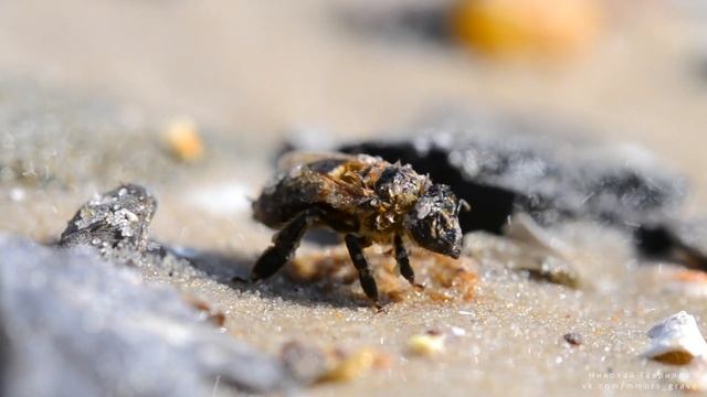 Wet dying bee