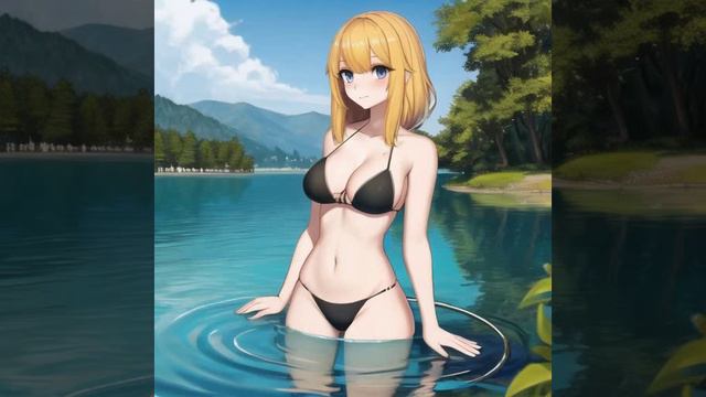 Девушки-блондинки купаются в воде озер.