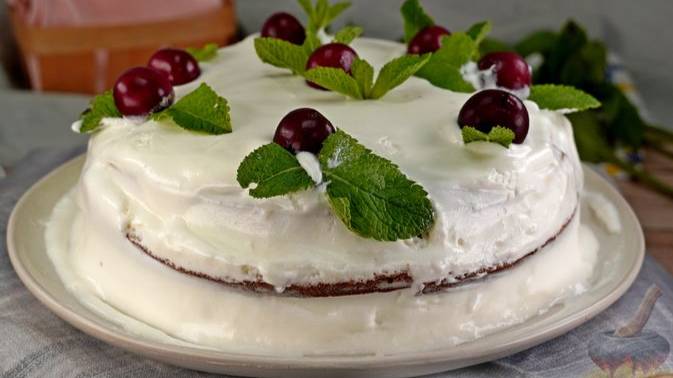 Идеально пропитанный. БИСКВИТНЫЙ ТОРТ С ЧЕРЕШНЕЙ И СЛИВОЧНЫМ КРЕМОМ