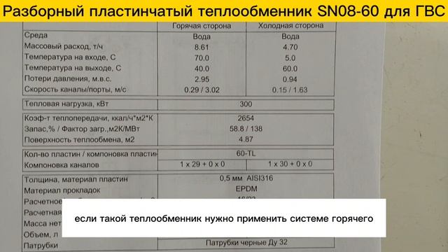 Для ГВС - https://www.ozon.ru/product/plastinchatyy-teploobmennik-sn08-5-dlya-gvs-15-kvt-260-l-chas-1306019589/ Пластинчатый разборный теплообменник SN08-60 Аппарат обладает следующими характеристиками: 1. Тепловая нагрузка 300 кВт 2. Горячая сторона. Вход: 70С, Выход: 40С 3. Холодная сторона (ГВС) Вход: 5С, Выход: 60С 4. Патрубки: Ду32 , нар. резьба. 5. Поверхность теплообмена (4,87м2) - 60 пластин ✅ Пластины теплообменника изготовлены из нерж. стали - AISI316 ✅ Высокие рабочие характеристики: макс. рабочее давление - 16 бар., макс. рабочая температура - 150С. ✅ Гарантия 3 Года ✅ Разборная конструкция позволяет легко промывать и обслуживать теплообменник. Мы производим пластинчатые теплообменники с 2009 года, поэтому можем предложить вам лучшие условия: ? - Предложим цену на 30% ниже рынка! ??️ - Изготовим ваш теплообменник за 1 день! ? - Надежно упакуем и доставим оборудование на ваш объект! ?? - Доставим теплообменник в любую точку России! ? - Расчет теплообменников ведется в сертифицированной программе расчета. Подберем на любую мощность и посчитаем за 15 минут! ? - Постоянная сервисная поддержка!