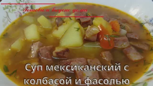 Мексиканский суп с колбасой и фасолью