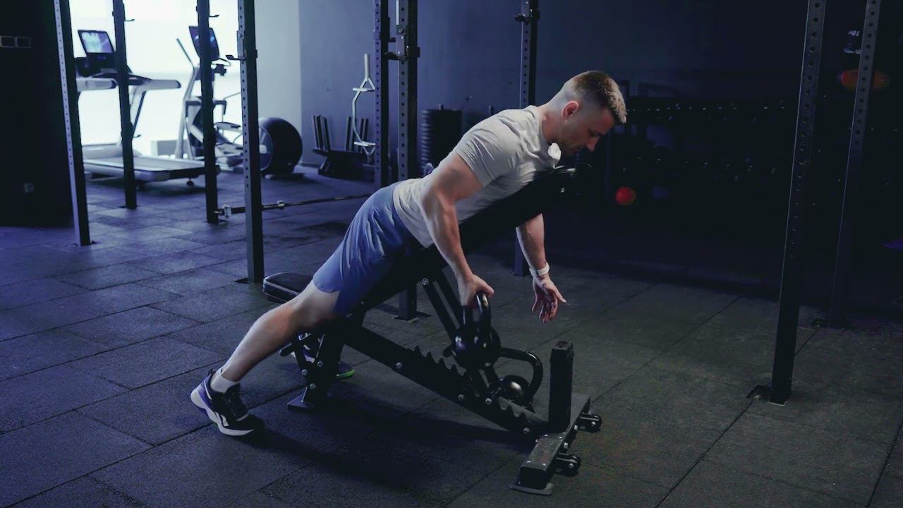 Тяга гири на наклонной скамье пронированным хватом/ Prone KB incline row