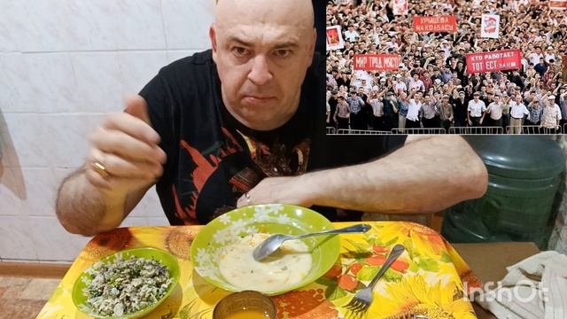 Мукбанг. Сливочный суп, салат из курицы с баклажанами и сок. События в Новочеркасске 1962 г.