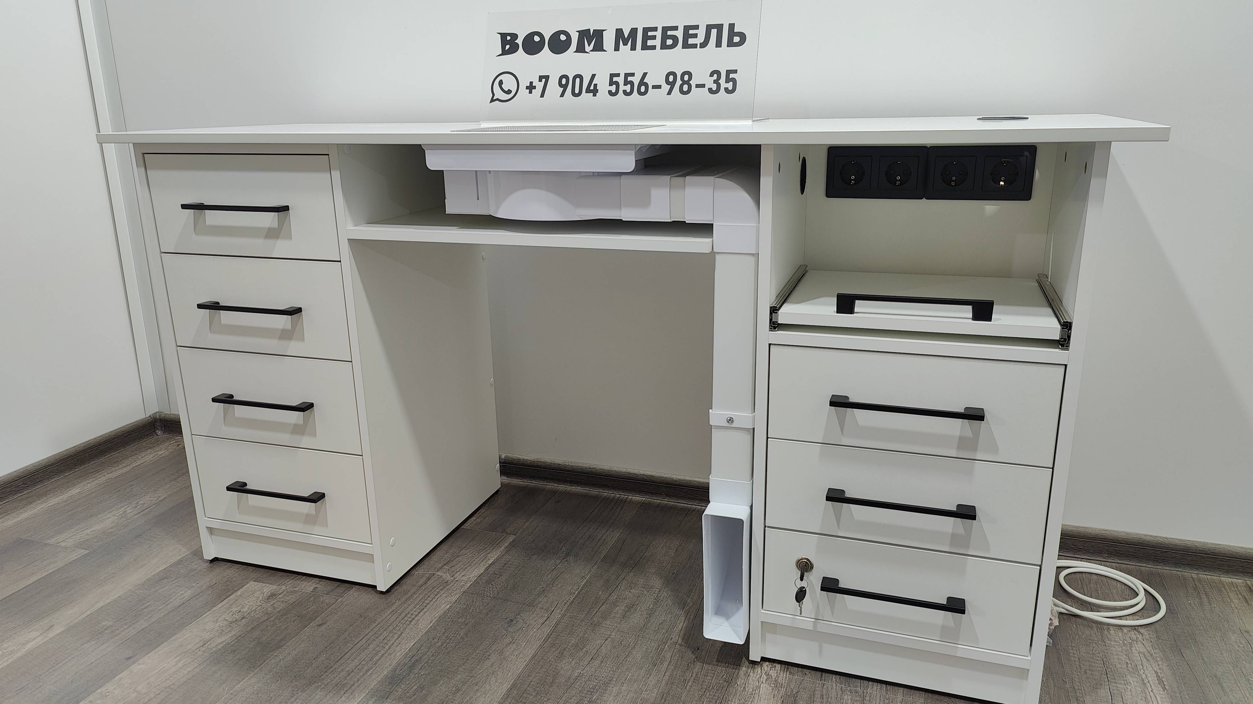 Создаем профессиональные маникюрные столы с розетками. Изготавливаем столы для маникюра по Вашим размерам и пожеланиям. ❗️ Изготавливаем мебель по соц. контрактам Можно внести изменения по Вашем пожеланиям: ✔Изменить размеры ✔Изменить цвет/декор ✔Изменить цвет и форму ручек ✔Поменять наполнение (ящики, полочки, дверцы, замочки и др.) ✔Сделать отверстия для проводов ✔Установить дополнительные розетки, изменить положение розеток ✔Установить встраиваемую вытяжку ✔Установить колеса со стопором ✔Изготовить каретную стяжкой ✔И многое другое по Вашим пожеланиям При внесении изменений окончательную стоимость изделия уточняйте у менеджера. Материал изделия ЛДСП EGGER или Lamarty Фурнитура - Boyard , GTV Меридиан. Получение заказа: ✔ Есть самовывоз и доставка. ✔ Отправляем заказы транспортными компаниями в другие города. Стоимость доставки Вам рассчитает менеджер. Остались вопросы? Напишите нам в WhatsApp +7(904)556-98-35 Мы подскажем всю информацию.