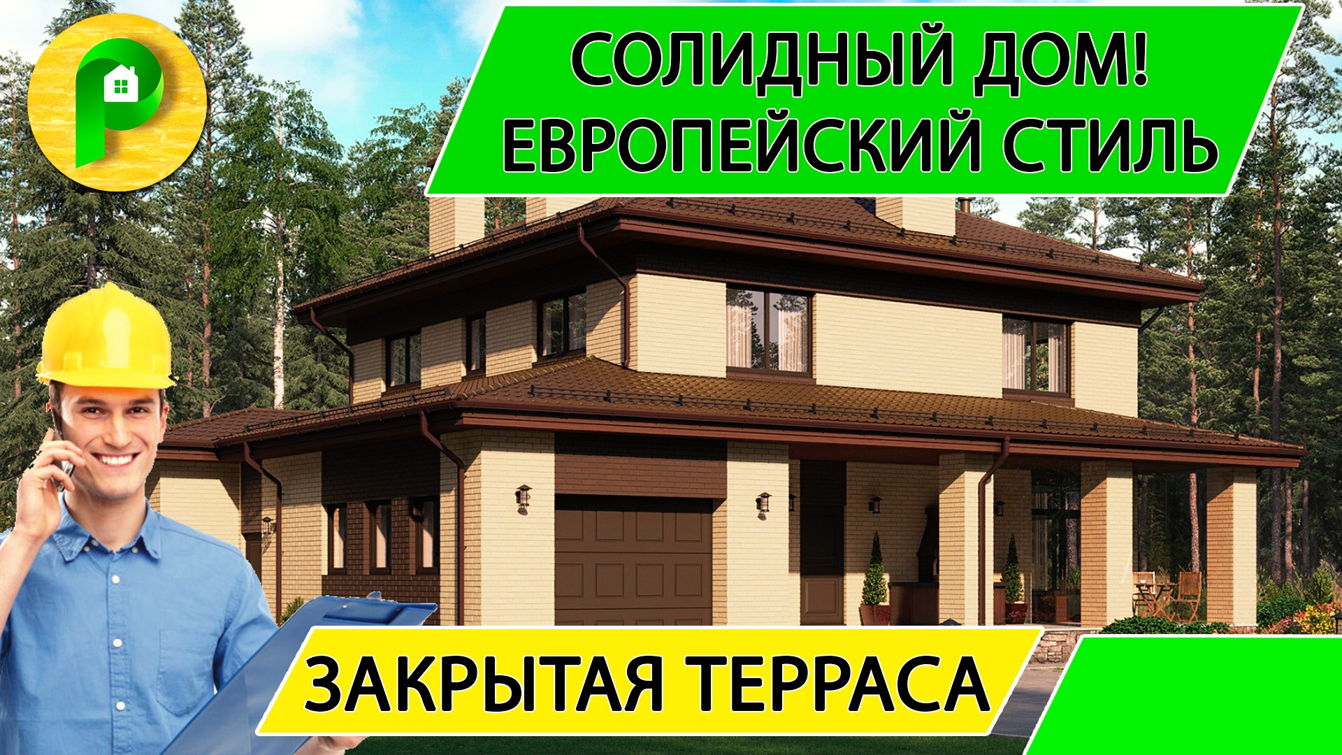 Проект дома в европейском стиле с закрытой террасой - верандой, 2 этажа, гараж Ремстройсервис М 348