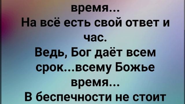 ХРИСТИАНСКИЕ ПЕСНИ ДЛЯ ХВАЛЫ И ПОКЛОНЕНИЯ ПРОСЛАВЛЕНИЯ ВООДУШЕВЛЕНИЯ ЕВАНГЕЛИЗАЦИИ ДУХОВНОГО РОСТА ПРОБУЖДЕНИЯ #господь#музыка#христианская_музыка#музика#христианскиепесни#бог#христианскиестихи#любовь#христианство#стихи#песня#песни#иисус#иисусхристос#иисусмойбог#иисус_христос#иисусбог#иисусгосподь#хвалы_и_поклонения#хваление#хвала#прославление#духсвятой#духовныйрост#духовноепробуждение#духовность#евангелие#евангелизация#евангельскаявесть#духовный_рост#пробуждение#рождество#рождествохристово#божий#божийнарод#божьеслово https://stihi.ru/avtor/zhanna70 "ВСЕМУ - БОЖЬЕ ВРЕМЯ!!!" СЛОВА, МУЗЫКА, ОБРАБОТКА: ЖАННА ВОЛКОВА-ВАРЛАМОВА Стихи Жанна Волкова-Варламова https://stihi.ru/2025/01/04/6700 Течением реки уносит в пропасть... Как грех ведёт к падению людей. Их жизнь сложна, но не идут они за Богом... За этот грех на страшный суд пойдут они́. Припев: Стареют все... На всё есть время... На всё есть свой ответ и час. Ведь, Бог даёт всем срок...всему Божье время... В беспечности не стоит нам ходить!!! Горит огонь, всё он обжигает... Рыдание, скрежет там зубов. Ад не молчит...к себе он зазывает... Весельем, похотью, и, всякой ерундой. Припев: Стареют все... На всё есть время... На всё есть свой ответ и час. Ведь, Бог даёт всем срок...всему Божье время... В беспечности не стоит нам ходить!!! Идут года, и, время уже близко... Задуматься нам стоит о себе. Живу ли я, ка́к все?!Путь под ногами скользкий?! Поговори, душа, с Отцом наедине!!! Припев: Стареют все... На всё есть время... На всё есть свой ответ и час. Ведь, Бог даёт всем срок...всему Божье время... В беспечности не стоит нам ходить!!! 04.01.2025 Жанна Волкова-Варламова
