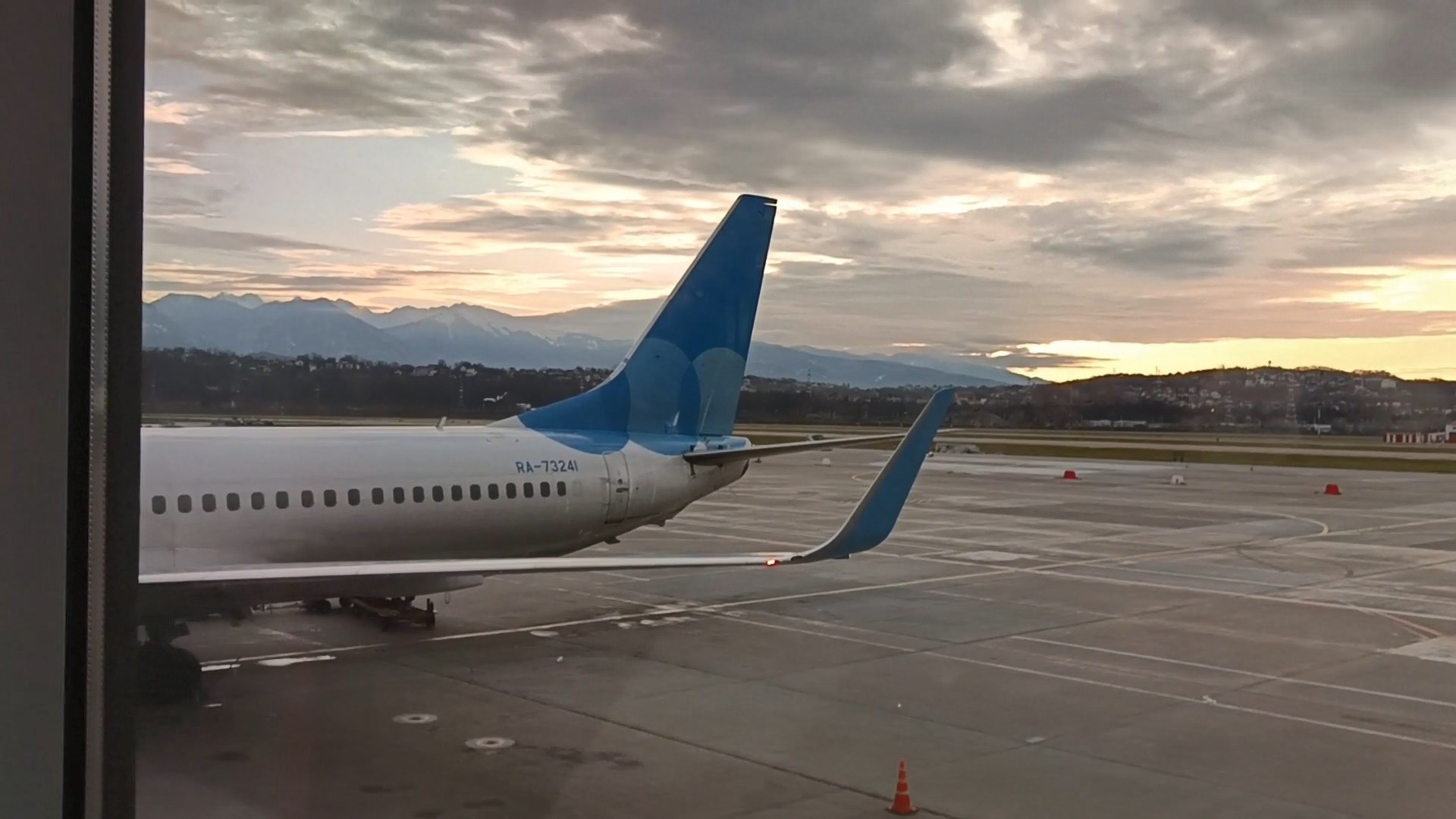 Аэропорт Сочи, лечу в Москву. Посадка в самолёт. Обалденные виды на рассвет над горами с телетрапа.