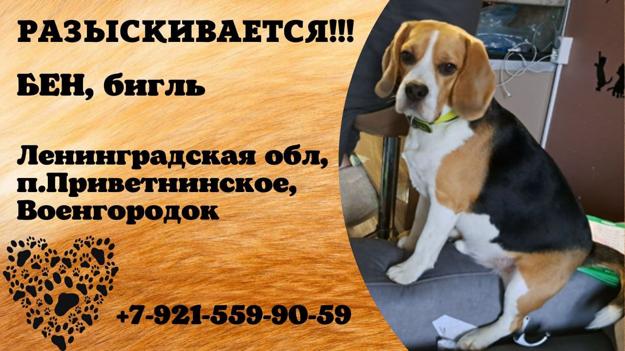 Пропала собака! БЕН. Бигль. Ленинградская обл, п. Приветнинское