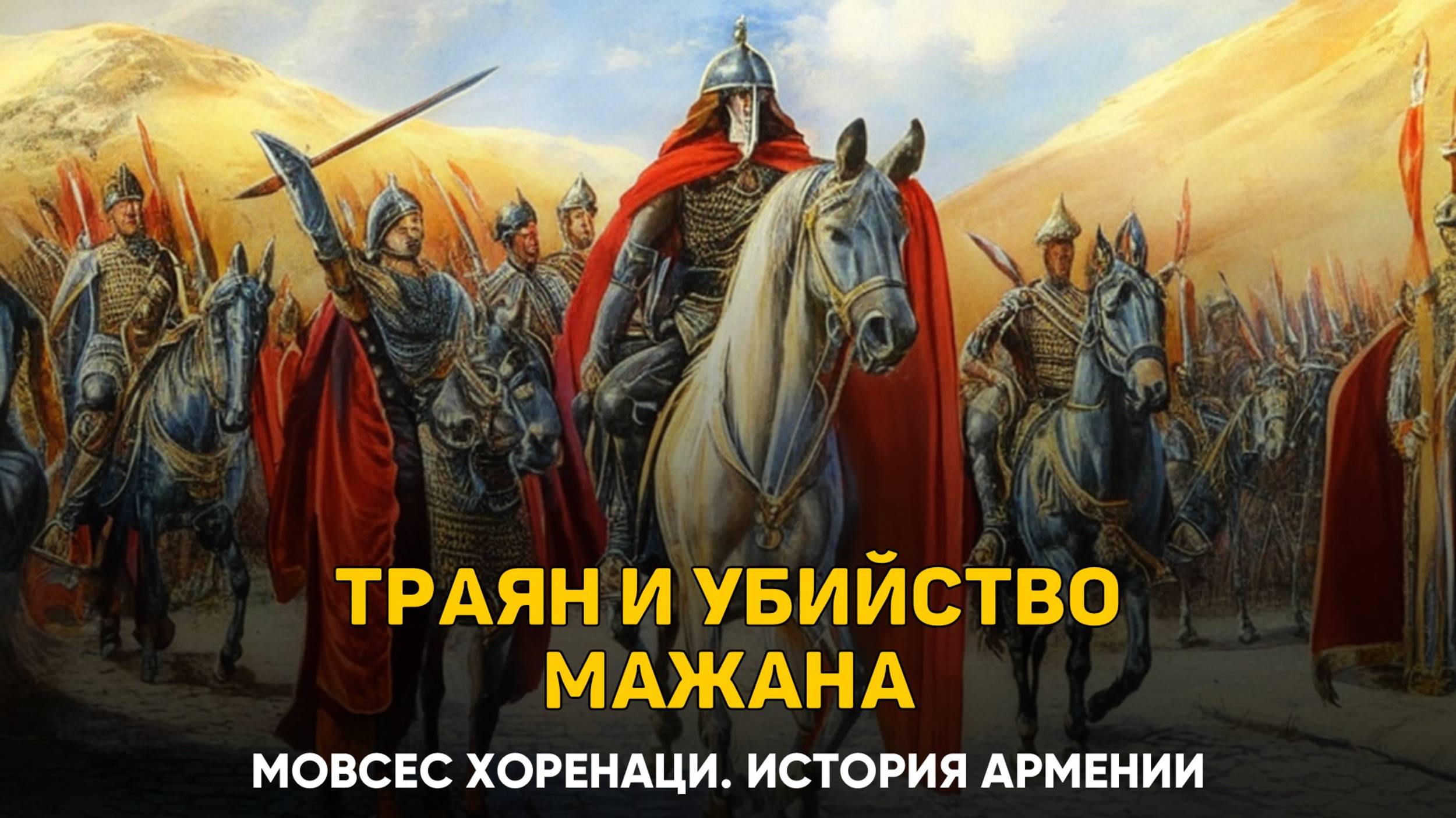 Telegram: https://t.me/historyarm1 YouTube: https://youtube.com/@armeniaros RuTube: https://rutube.ru/channel/25754027 VK: https://vk.com/armeniaros В это время в Риме становится царем Траян. Установив мир на всем Западе, он движется на Египет и Палестину, подчиняет их своей власти и идет на восток, против персов. Арташес спешит выйти ему навстречу с богатыми дарами, кается в своей вине и складывает перед ним дань за прошедшие годы. Получив от него прощение, он возвращается в Армянскую страну. Траян же направляется в Персию и, выполнив все задуманное, пускается в обратный путь через Сирию. Навстречу ему выходит Мажан с доносом на своих братьев. «Знай, государь, говорит он, что, пока ты не изгонишь Артавазда и Тирана и не поручишь армянское войско Зареху, дань без затруднений к тебе поступать не будет». Мажан сделал это из мести за Смбата, ибо тот был также его воспитателем. Заодно он думал устранить и Тирана, дабы быть одновременно и верховным жрецом, и военачальником запада. Но Траян не придал этому значения и отпустил его ни с чем. Артавазд же и Тиран, проведав о замысле Мажана, устроили засаду во время охоты и убили его, отвезли и похоронили в Багнац-аване как верховного жреца. С этих пор и до конца своей жизни Арташес исправно выплачивал дань Траяну, а вслед за ним — императору Адриану.