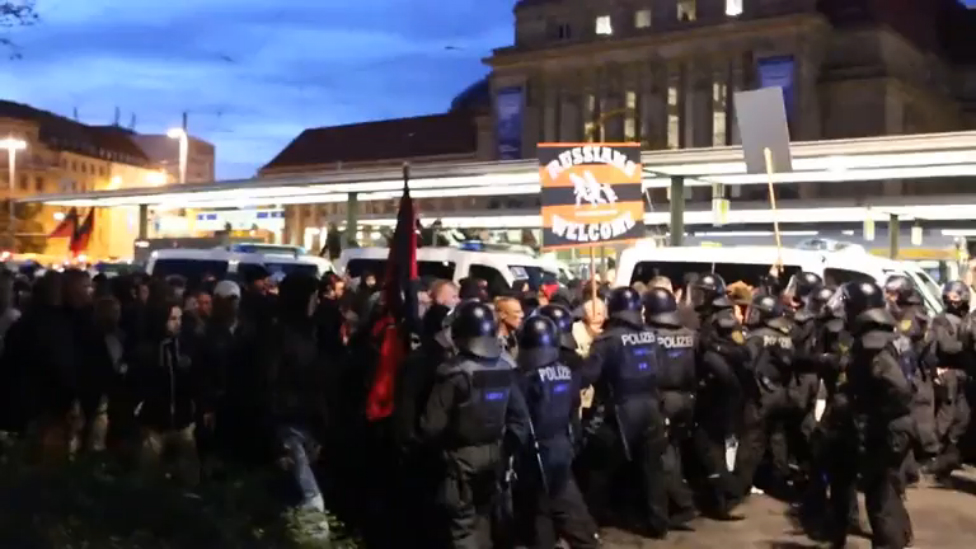 На демонстрацию 14 сентября 2015 года против политики Меркель касательно беженцев немцы вышли с плакатами "Russians Welcome".