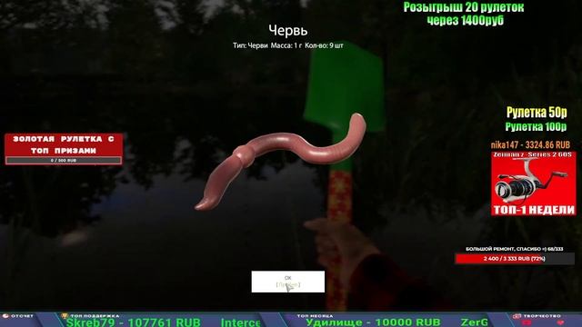 Поддержка донатом https://new.donatepay.ru/@1032463 Альтернативный донат https://www.donationalerts.com/r/kalyamba11 5536913964533059 карта Тинькоф Если стрим лагает,смотри стрим на трово https://trovo.live/s/Kalyamba_na_Ribalke Мой ВК - https://vk.com/kalyantv НИК в игре kalyan11 НАШ ДИСКОРД СЕРВЕР https://discord.gg/EZtvSgwr Заказ водоема на 1 час - 500р ( весь стрим 2500р ) Модерка на канале 1300р ( каждая следующая на 100р больше) ✅Призы в рулетке "ЗОЛОТАЯ" 500р ✔ ЗОЛОТО ✔ ПРЕМ ✔ КАТУШКИ РАПТОР 40, ВЕНГИ, ТАЙГА, СИЛЬВЕР 80, И другие ✔ ПАЛКИ ПИЛКЕРНАЯ, ДОНКА МОРСКИЕ, ✔ РОД ПОД, СТУЛЬЯ ✅Призы в рулетке СТАНДАРТ : 100р ✔ катушкИ РАПТОР 40, ВЕНГИ, ТАЙГА, СИЛЬВЕР 80, И другие ✔ катушки 60 для медного ( ЭВИИ, НАТОРЫ, ГОЛДА, и тд) ✔ ПИЛКЕРНОЕ УДИЛИЩЕ КОРОЛЕВА ОКЕАНА ✔ Морское Донное удилище ✔ прем ( 3, 7, 30 дней) ✔ золото ( 1, 3, 5, 10, 20 ,50) ✔ билет на море ( 1, 3, 5 дней) ✔ голд наживка и др. ✅Призы в рулетке "СТАРТОВАЯ" 50р ✔ катушка Венга ✔ катушка "silver80" ✔ катушка "БЕЛЫЙ КАЛИБР" ✔ катушка "Черный калибр" ✔ катушка "Протон" ✔ катушка "Нарга 6000" ✔ Набор Фидерист и спинингист ✔ Карповик Фортуна ✔ фидерные удилища ✔ прем, золото, алкашка, наживки и тд P.s Рулетка это не казино, а награда за поддержку стримера. Вечный ТОП ПОДДЕРЖКИ (10.06.2025) 1. Леха сварной 214 572 2. Dimon_pokemonchik 127 034 3. Skreb79 103 061 4. Interceptor 96 230 5. FishRus86 82 500