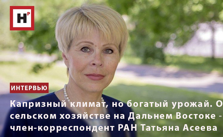 КАПРИЗНЫЙ КЛИМАТ, БОГАТЫЙ УРОЖАЙ. О СЕЛЬСКОМ ХОЗЯЙСТВЕ НА ДАЛЬНЕМ ВОСТОКЕ ― ЧЛ.-КОРР. РАН Т. АСЕЕВА