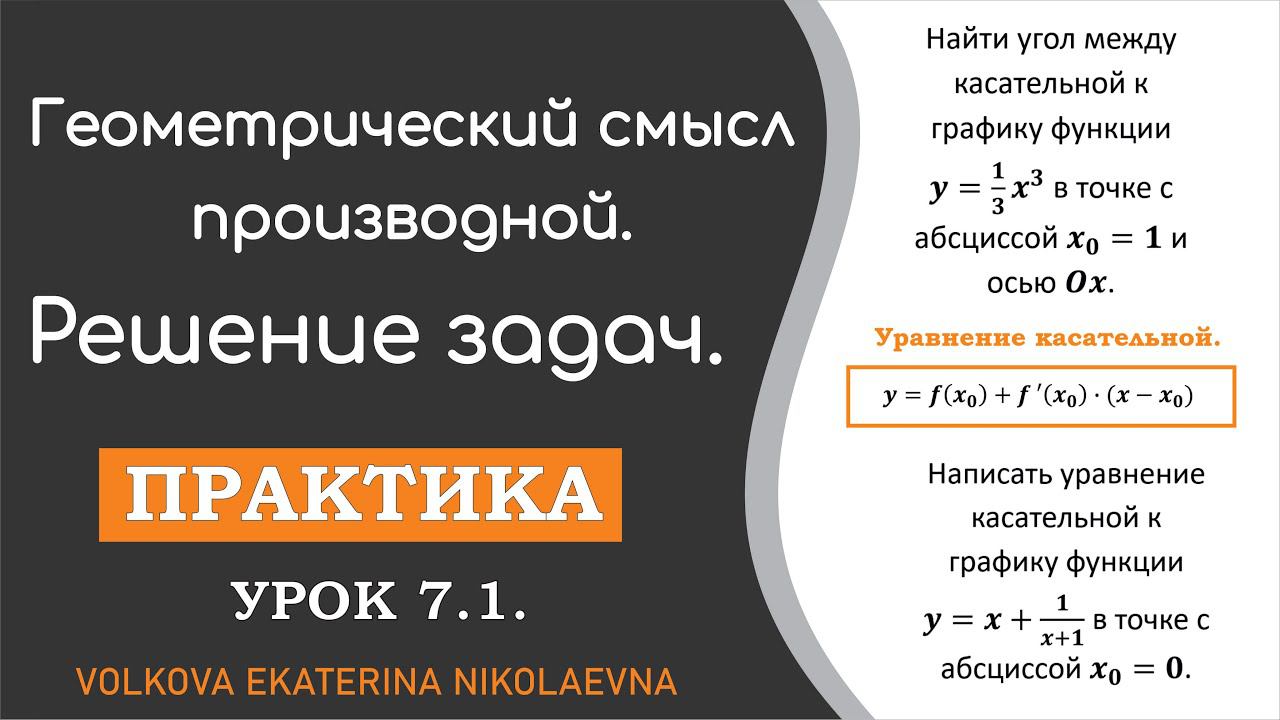 Геометрический смысл производной. Решение задач. Урок 7.1.