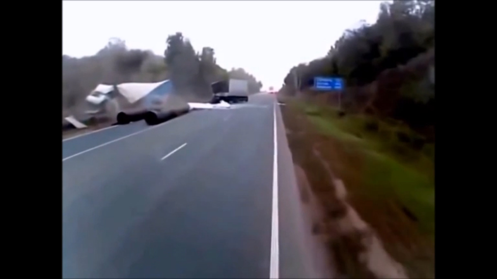 Лихо подрезал грузовик на дороге