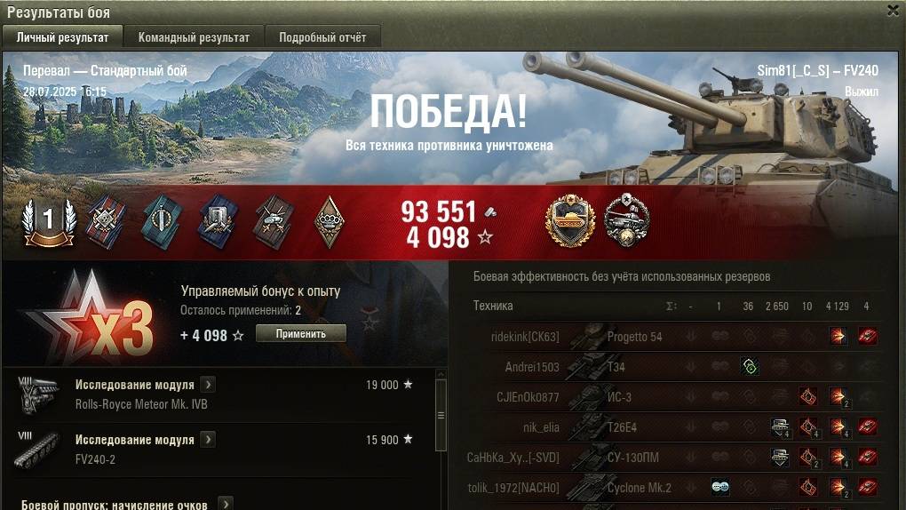Мир танков. FV240. Затащили катку