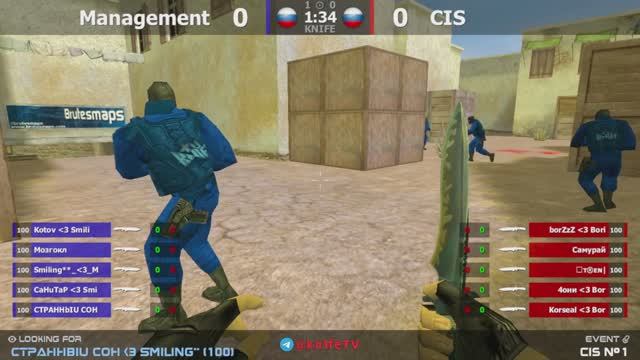 Игра за 3 место на турнире по CS 1.6 от проекта "CGA" [СНГ -vs- Руководство] 2map @kn1feTV