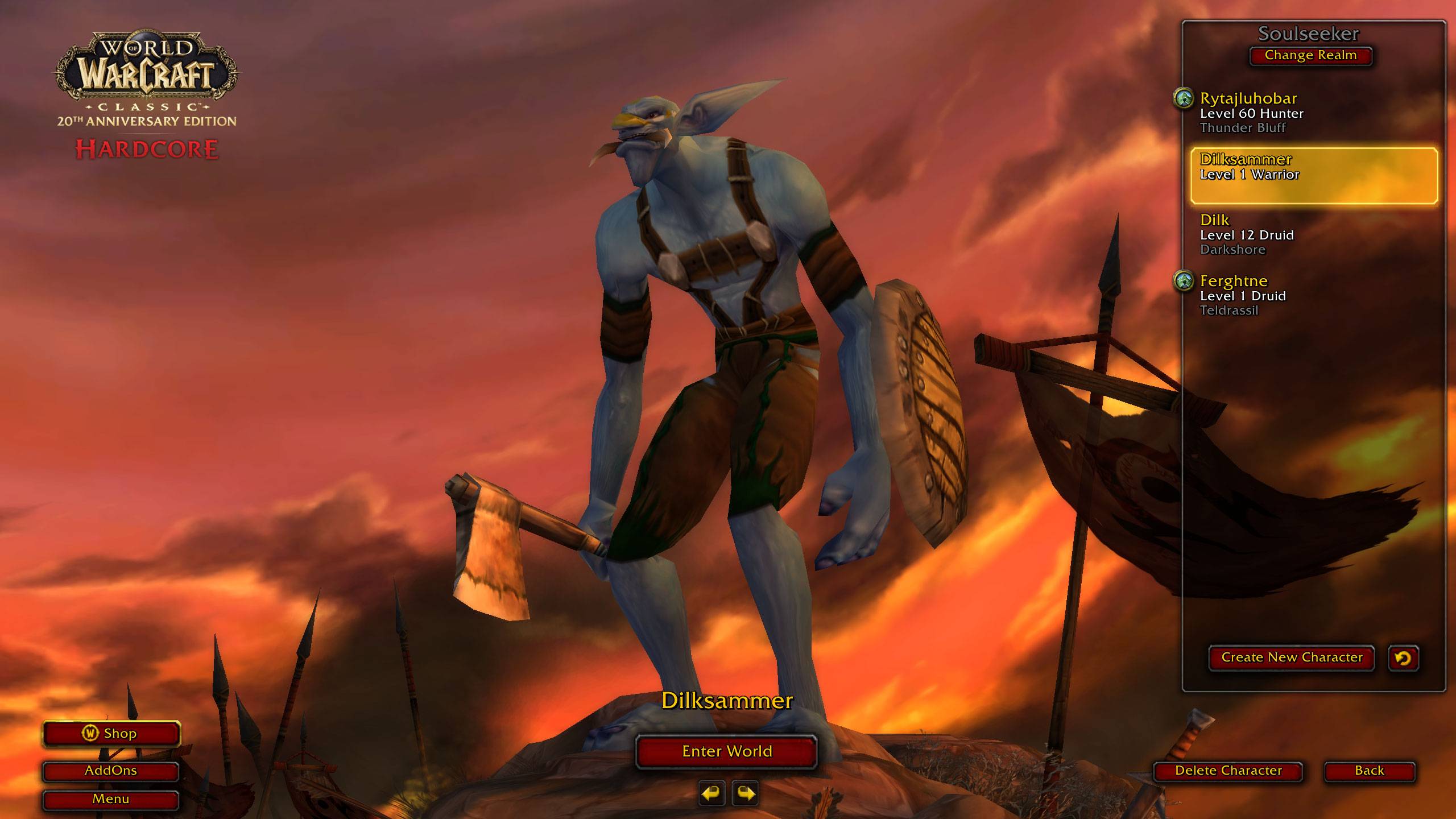 Воин 15-17 лвл Hardcore SOULSEEKER World of Warcraft classic 20th anniversary