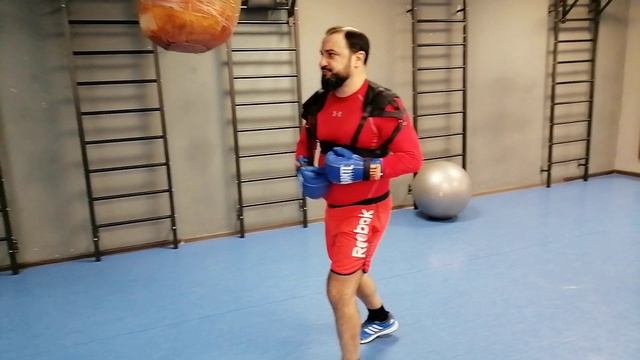 Бокс. Постановка удара в тренажёре панчера.