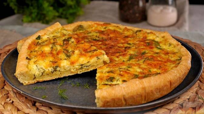 Этот питательный пирог насытит даже без мяса, что делает его отличным выбором для обеда или ужина. #КишССырноТворожнойНачинкой #СырныйПирог #ТворожныйПирог #ПирогСТворогом #ПирогССыром