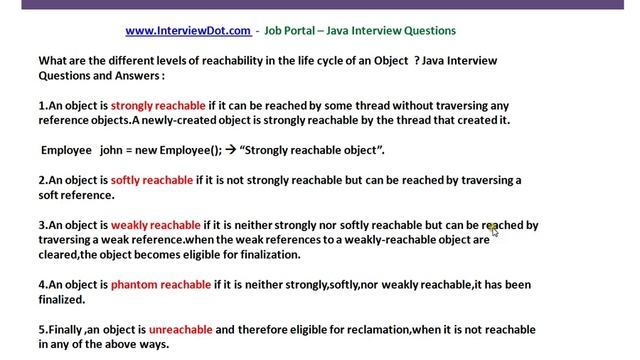 Click here - https://www.youtube.com/channel/UCd0U_xlQxdZynq09knDszXA?sub_confirmation=1 to get notifications. Java Interview Question And Answer Strong Softly Weak Phantom Unreachable Reference in Java A Job Portal http://www.InterviewDot.com http://www.InterviewDot.com http://www.InterviewDot.com One Click Dream Job - http://www.interviewdot.com/upload-resume/uploadresume.htm Other Top Job Portals www.Naukri.com www.MonsterIndia.com www.TimesJobs.com Are you looking for a new Job ? InterviewDot.com - A Job Portal http://www.InterviewDot.com http://www.InterviewDot.com http://www.InterviewDot.com One Click Dream Job - http://www.interviewdot.com/upload-resume/uploadresume.htm