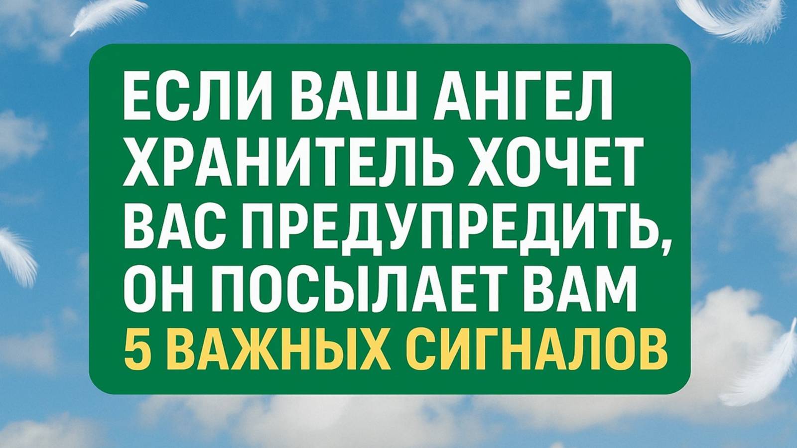 В этом видео вы узнаете, какие 5 особых знаков подаёт ангел-хранитель, чтобы предупредить о важных событиях в вашей жизни. Эти сигналы приходят внезапно, но каждый из них способен изменить судьбу, если суметь их распознать и правильно понять. Мы разберём, как отличить настоящий знак от случайности, почему ангел-хранитель выбирает именно такие способы общения и что делать, чтобы связь с ним стала сильнее. Эти знания помогут вам быть внимательнее к подсказкам свыше и принимать верные решения. Вас ждёт увлекательный рассказ, полный примеров и образов, которые позволят почувствовать незримое присутствие рядом. Это видео заставит смотреть на привычные ситуации по-новому и поможет увидеть, что мир постоянно говорит с вами на своём особом языке.