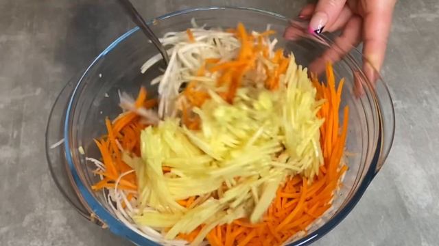 Всем привет!!! Салат из корня сельдерея это отличный вариант для полезного и быстрого перекуса.Очень свежий и лёгкий салат. Ингредиенты: Корень сельдерея 1/2 шт Морковь 1 шт Яблоко 1 шт Сок лимона 1 ст.л Кориандр 1/2 ч.л Растительное масло 2-3 ст.л Соль по вкусу Приятного Аппетита!!!