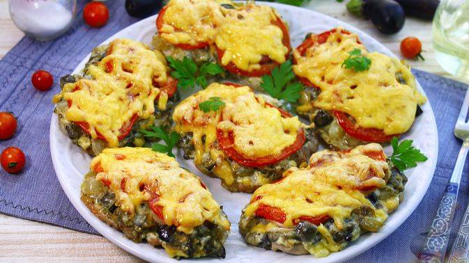 Свиные отбивные с баклажанами, болгарским перцем, помидорами и сыром, запечённые в духовке, — это вкусное и сытное блюдо. Нежное мясо, пропитанное овощными соками и ароматами, отлично сочетается с запечёнными овощами и тянущимся расплавленным сыром. #Отбивные #СвиныеОтбивные #МясоНаПраздничныйСтол