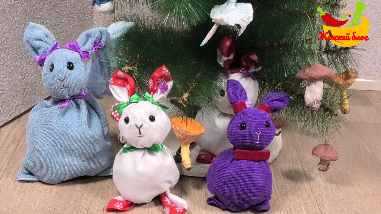 Делаем зайчика из салфеток под ёлочку и на праздничный стол
