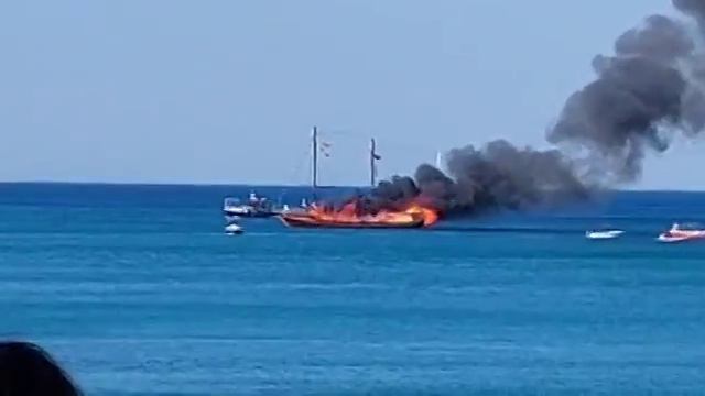 Туристический корабль сгорел у берегов Греции