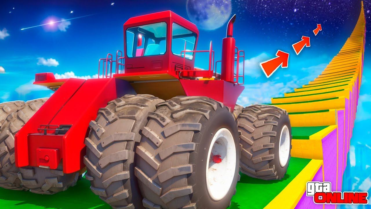 КАК ДАЛЕКО ГИГАНТСКИЙ ТРАКТОР СМОЖЕТ ЗАБРАТЬСЯ ПО СТУПЕНЬКАМ ЛЕСТНИЦЫ В КОСМОС? ЭКСПЕРИМЕНТЫ ГТА 5