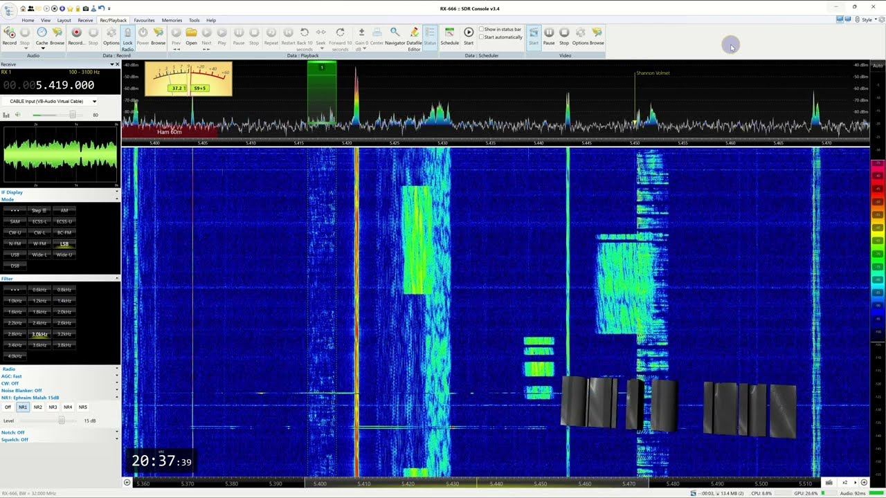 An interesting Arabic broadcast. What you can tell about it is that it is not the Egyptian Navy because they do not use LSB mode. It is not fishermen because the speech is monotonous. Maybe a military or religious message? Nem az Egyiptomi haditengerészet mert ők nem használnak LSB módot. És a beszéd stílusából nem is arab halászok.