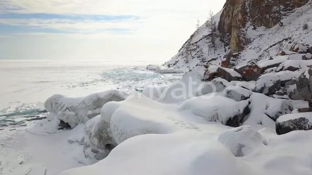 Slow slide movement over ice near the mountain on Baikal lake. https://videohive.net/item/slide-over-icy-rocks-near-mounatain/21635783
