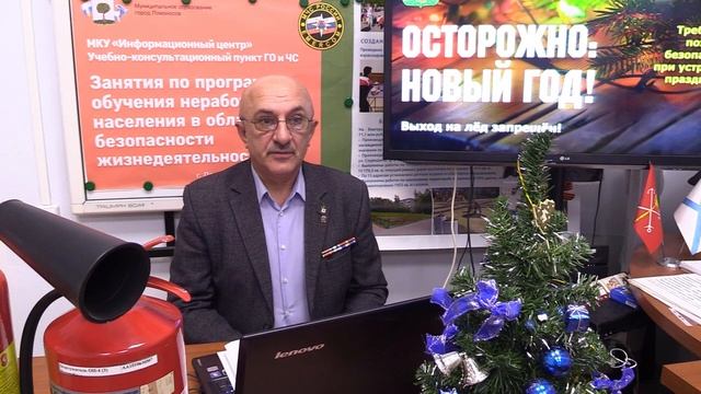 Перед вами занятие по теме "Осторожно Новый год. " Ведёт занятия заведующий Учебно-консультационного пункта по ГО и ЧС Михаил Иванович Тяско.