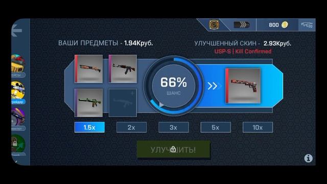 Помимо открытия кейсов и получения простых оружий, можно их обменять на более высокие или если на рулетке будет неудача, потерять всё.
